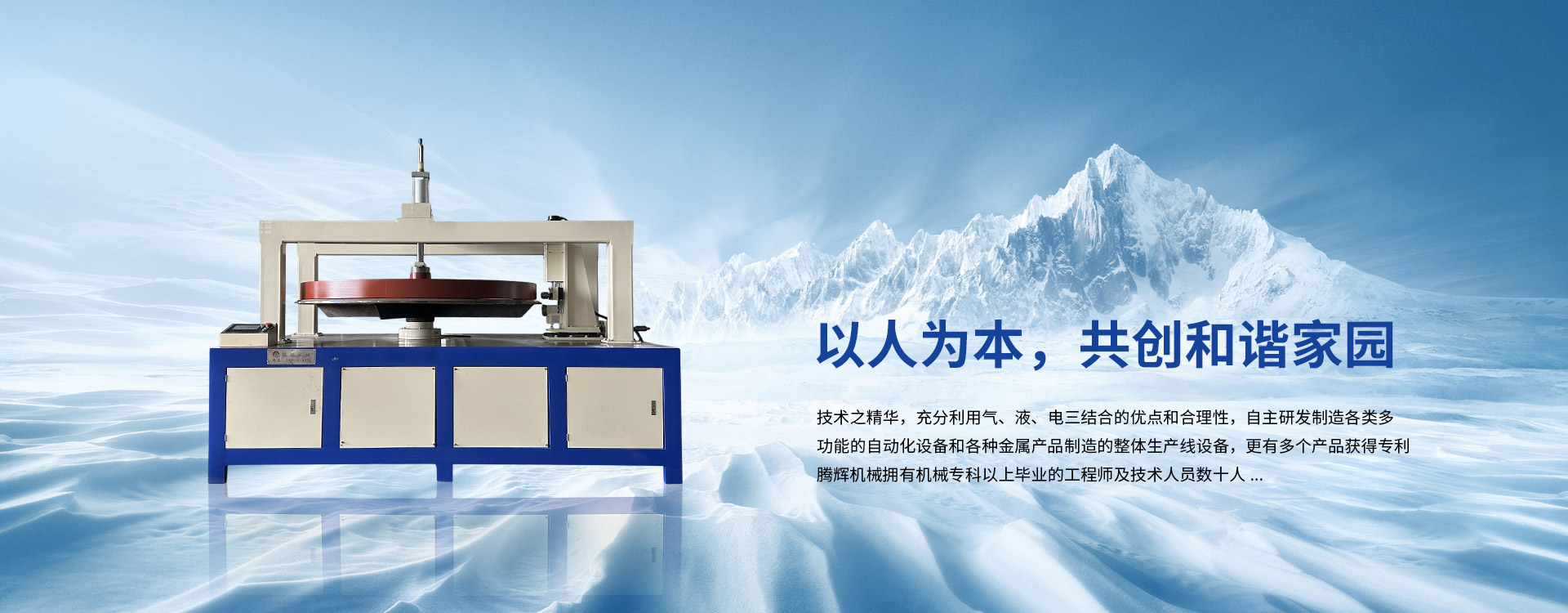 技術(shù)之精華,充分利用氣、液、電三結(jié)合的優(yōu)點(diǎn)和合理性,自主研發(fā)制造各類(lèi)多功能的自動(dòng)化設(shè)備和各種金屬產(chǎn)品制造的整體生產(chǎn)線(xiàn)設(shè)備,更有多個(gè)產(chǎn)品獲得專(zhuān)利。騰輝機(jī)械擁有機(jī)械專(zhuān)科以上畢業(yè)的工程師及技術(shù)人員數(shù)十人,各種職能部門(mén)配置齊全,擁有專(zhuān)業(yè)的設(shè)計(jì),精湛的制造技術(shù),具備一流的設(shè)備配套,還有完善的工藝流程...