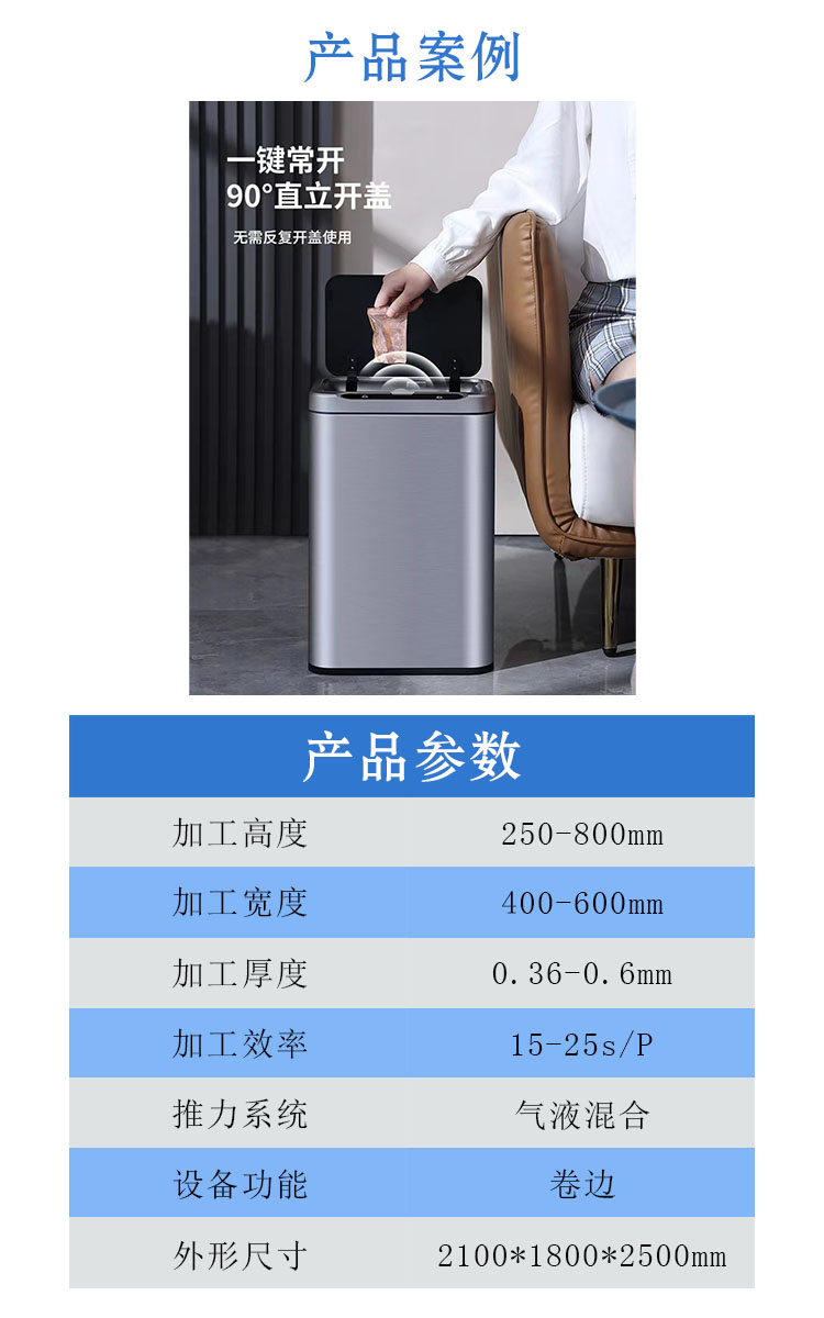 本文介紹的是一款異形雙頭卷邊機(jī),產(chǎn)品放進(jìn)模具中,按下自動啟動按鈕,模具推到固定位置,兩側(cè)推進(jìn)壓緊,上油缸推下碰到模具后漲緊產(chǎn)品上缸繼續(xù)往下推卷邊到設(shè)定位置,下油缸推上卷邊到設(shè)定位置,完成雙頭卷邊,全部上下油缸復(fù)位、左右氣缸復(fù)位,模具退出拿出產(chǎn)品。(公司根據(jù)客戶需求,為客戶量身定制適合的設(shè)備,歡迎新老客戶咨詢了解)
